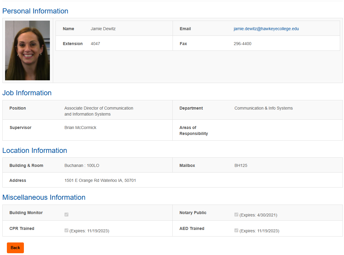 • Extension, fax, and mail box no will also need to be filled in as these fields are critical information for our employees to have both in their records in Colleague as well as the Hawkeye Directory.
